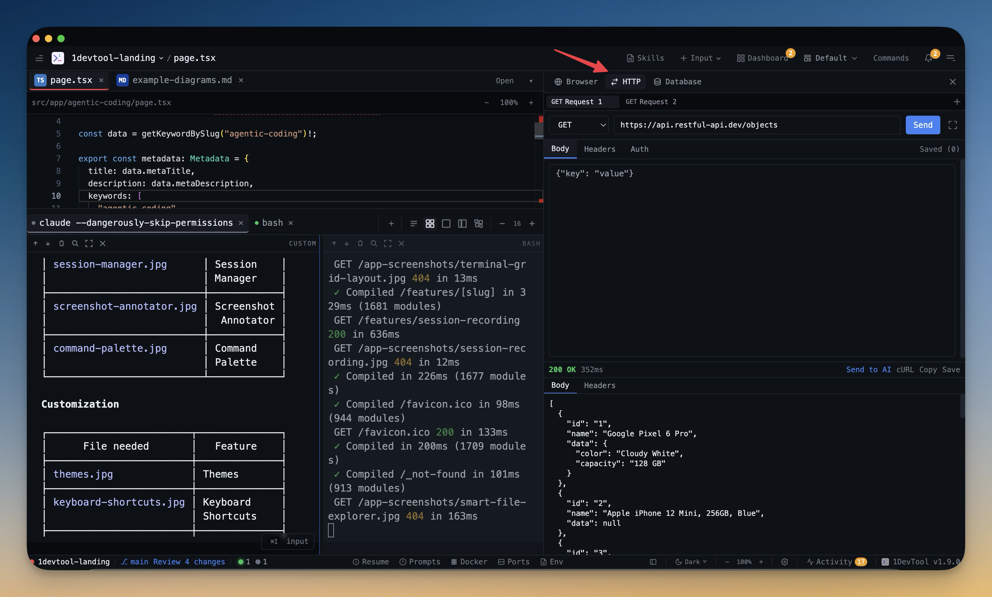 Download the latest build from 1devtool.com and try one path end-to-end: import an API collection, fix a failing request, send the resulting task to an AI terminal, and deploy the finished project without leaving the app.