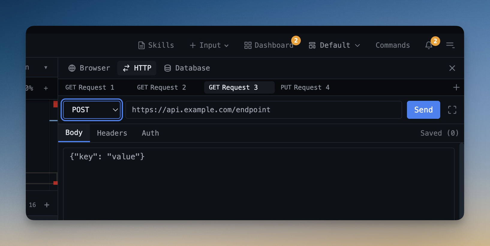 {{var}}substitution across URLs, headers, query parameters, and request bodies. - Import from Postman, Insomnia, and Bruno through dedicated parsers and import actions.